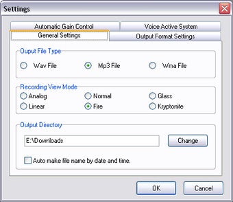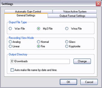 O menu de configurações do Audio Recorder for Free permite definir a placa de som que você prefere usar, o formato final e a pasta de destino das gravações. O aplicativo pode guardar os arquivos como MP3, WAV e WMA.